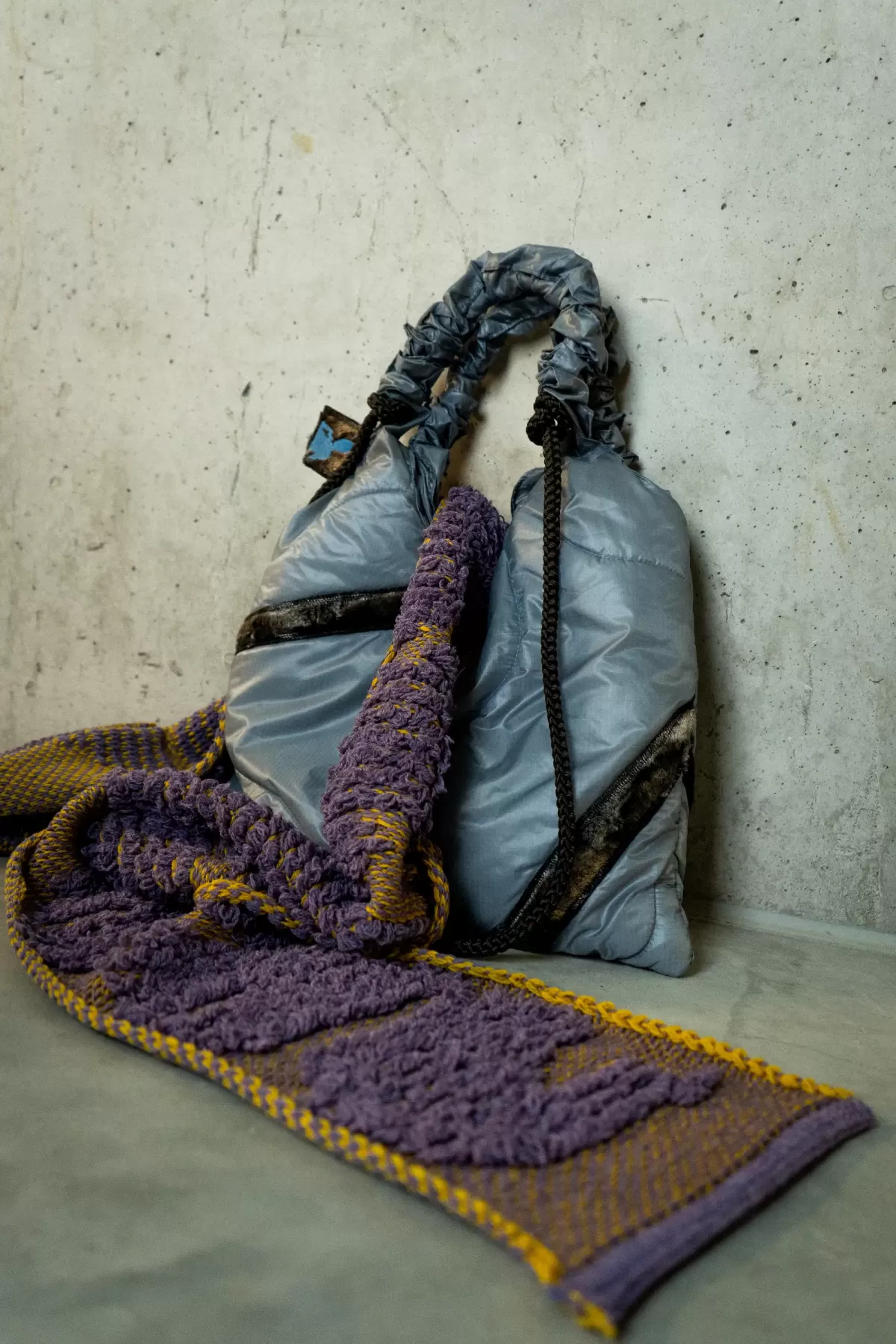 Ve své diplomové práci na UMPRUM se věnuji rašeliništím jako místům, která po tisíce let uchovávají vrstvy přírody – paměť země. Tento princip přenáším do kolekce pletených ručníků, které vznikají v celku, bez švů a spojů, a propojují výzkum pletacích technik s funkčním a estetickým objektem.